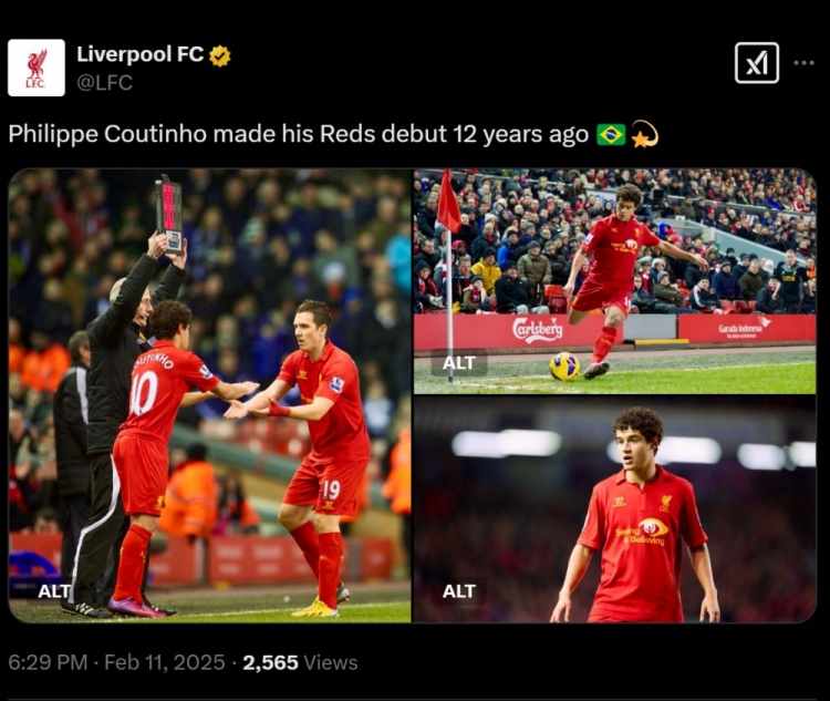 2月11日訊 12年前的今天,庫(kù)蒂尼奧迎來了自己紅軍生涯首秀,利物浦更新動(dòng)態(tài)表示紀(jì)念。