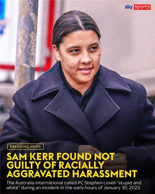 這位澳大利亞女足國腳于2023年1月30日凌晨在倫敦西南部與倫敦警察廳警官斯蒂芬-洛弗爾發(fā)生沖突時,稱對方為"愚蠢的白人"。當?shù)鼗始曳ㄔ号銓張F在當?shù)貢r間周二經(jīng)過4小時17分鐘審議后,作出無罪判決。