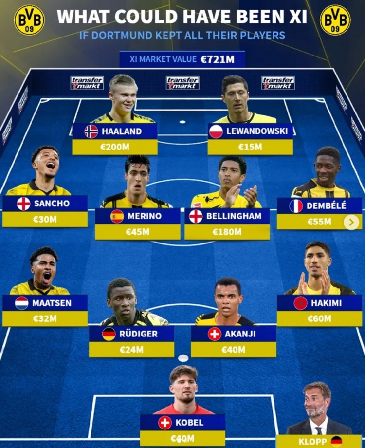 2月12日訊 《轉(zhuǎn)會(huì)市場(chǎng)》列出了一套有過效力多特履歷的當(dāng)前最強(qiáng)陣,實(shí)際僅門將科貝爾仍在陣中。