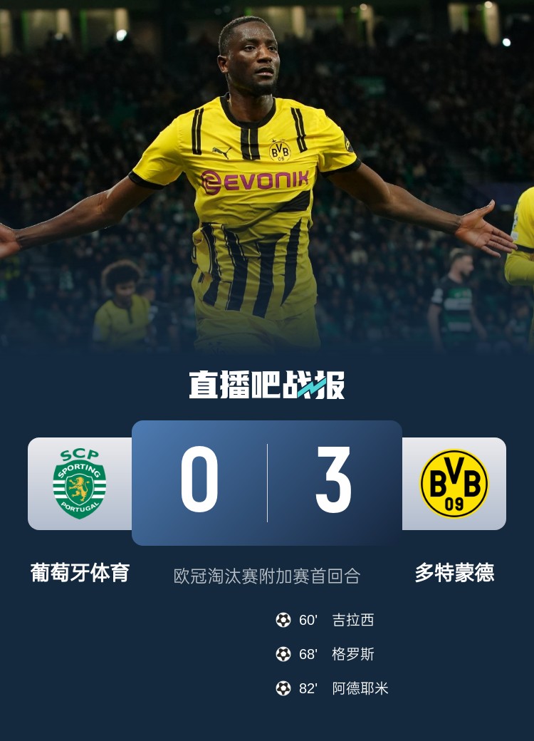 吉拉西、阿德耶米破門,多特蒙德客場(chǎng)3-0擊敗葡萄牙體育。