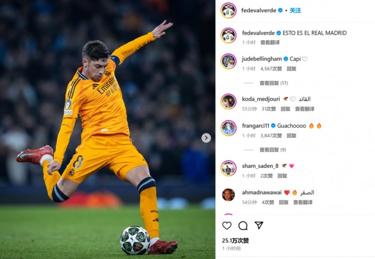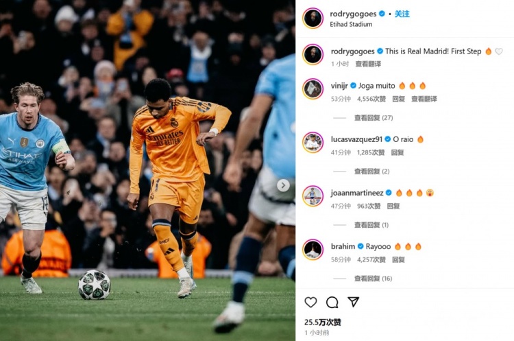 本場客串右后衛(wèi)的巴爾韋德表示:“這就是真正的皇馬!”而右邊鋒羅德里戈也配文道:“這就是皇馬!邁出(晉級)第一步????????