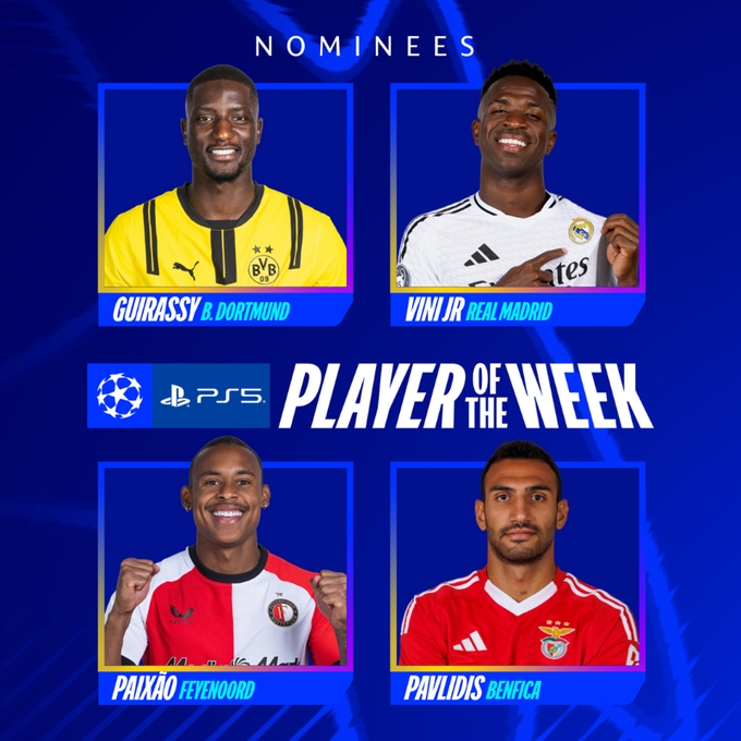 2月13日訊 歐足聯(lián)公布了本周歐冠比賽最佳球員的候選,吉拉西、派修、帕夫利季斯以及維尼修斯入圍。