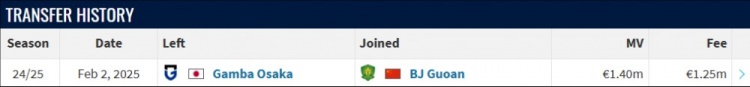 德轉(zhuǎn)更新了達萬的轉(zhuǎn)會費,他加盟國安的費用為125萬歐(約合948萬元人民幣),而他的身價是140萬歐。