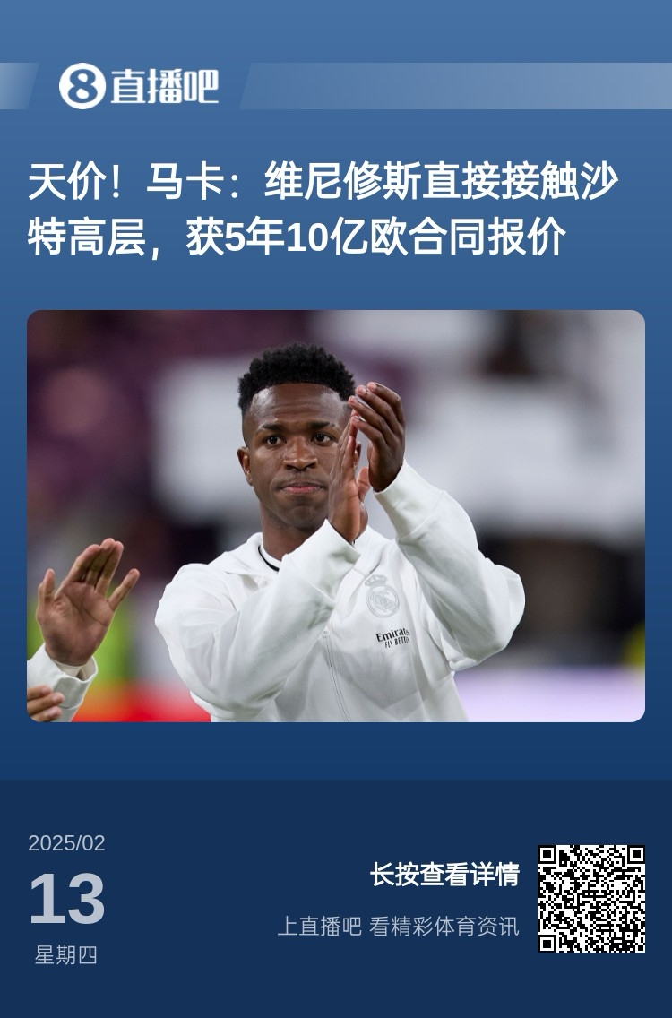 ????天價(jià)!馬卡:維尼修斯直接接觸沙特高層,獲5年10億歐合同報(bào)價(jià)