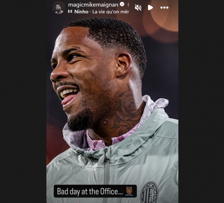 邁尼昂也在今日通過社媒曬出自己的苦笑照,并配文:“辦公室里的糟糕一天……”