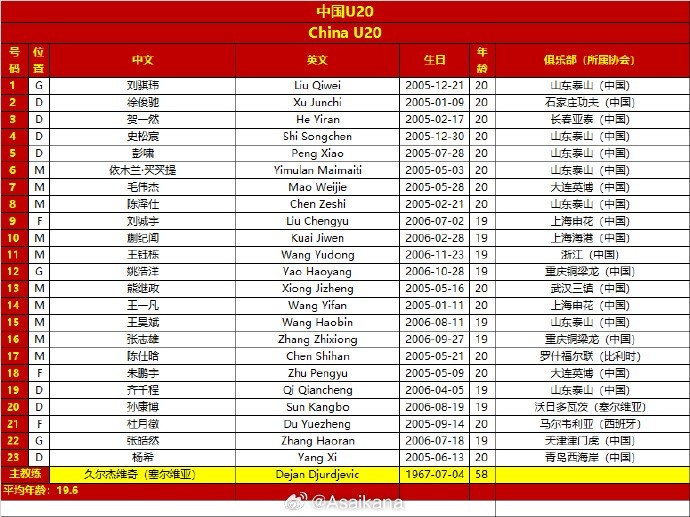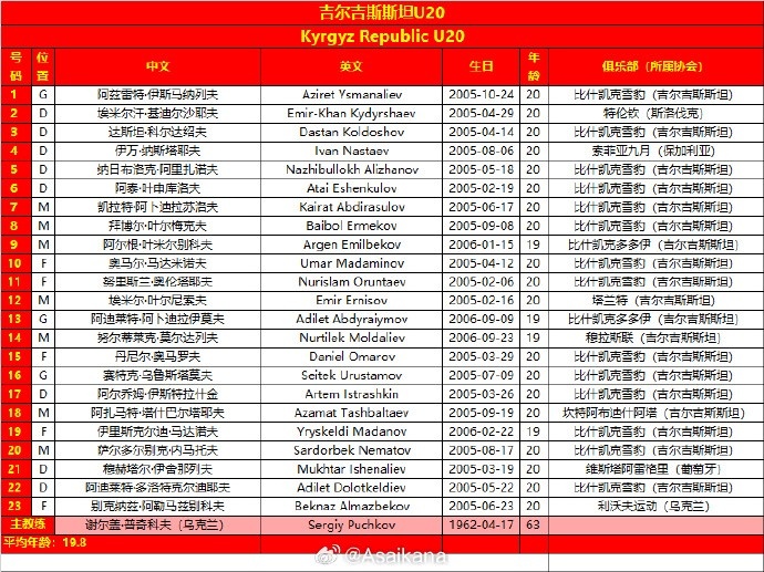 2025年中國(guó)U20亞洲杯 小組賽 中國(guó)vs吉爾吉斯斯坦 兩隊(duì)23人大名單