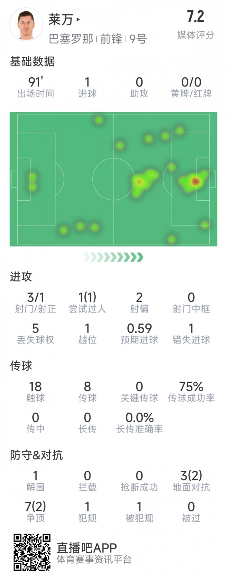 2月2日訊 在本輪西甲巴薩對陣阿拉維斯的比賽中,萊萬打進(jìn)唯一進(jìn)球,以下為他在本場數(shù)據(jù):